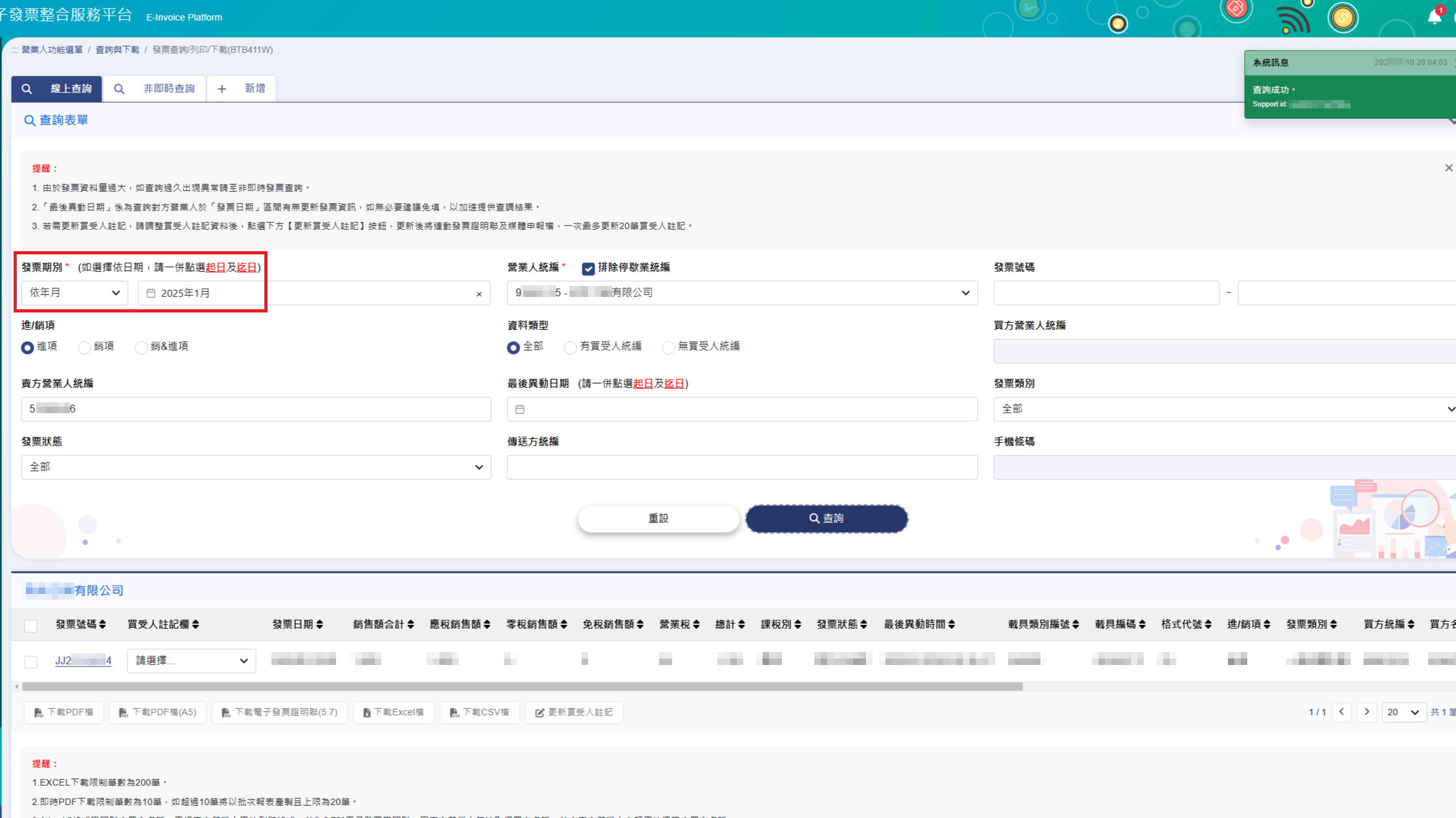5.設定要查詢的發票”期別”、”年月”、或”日期”