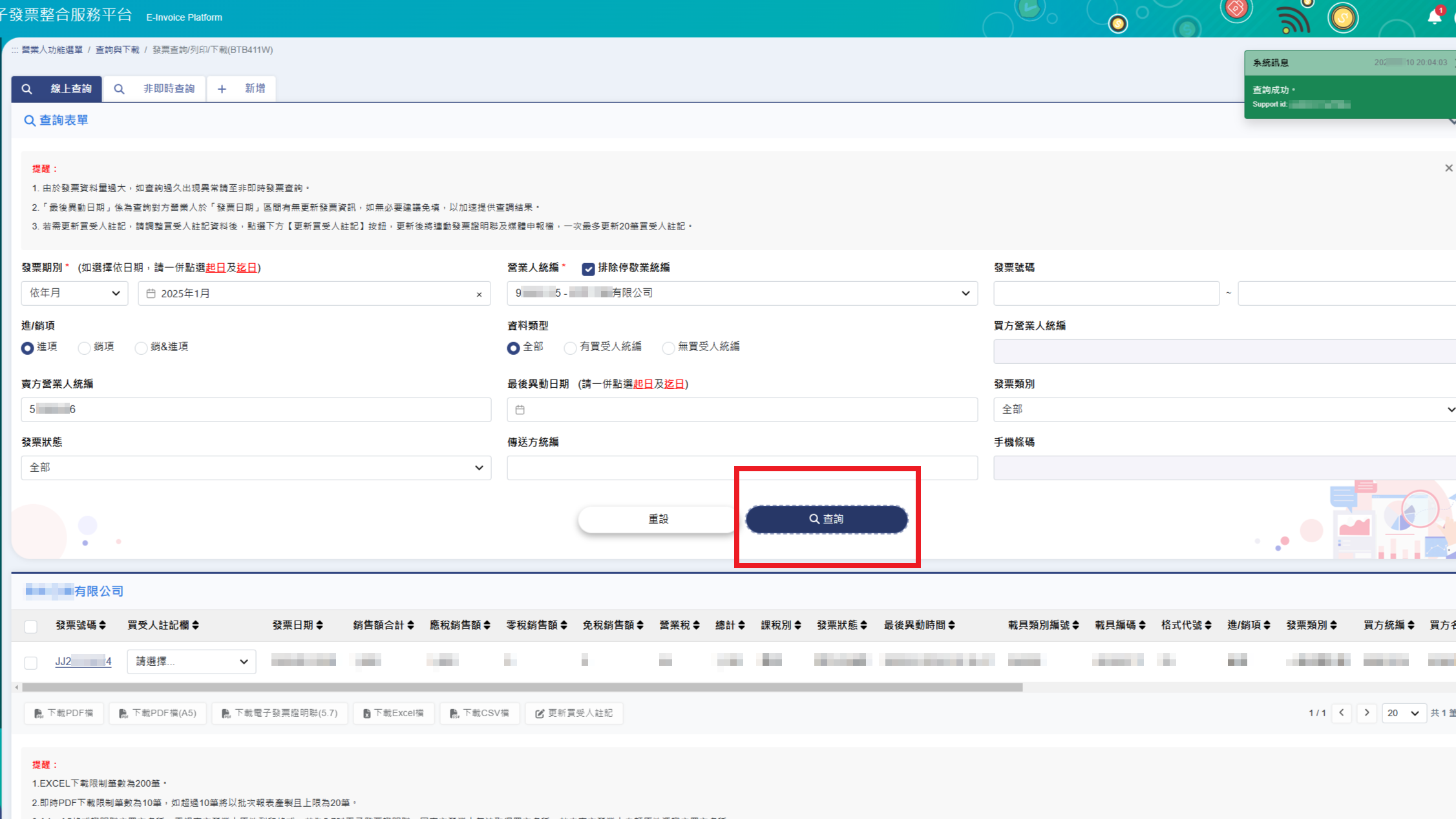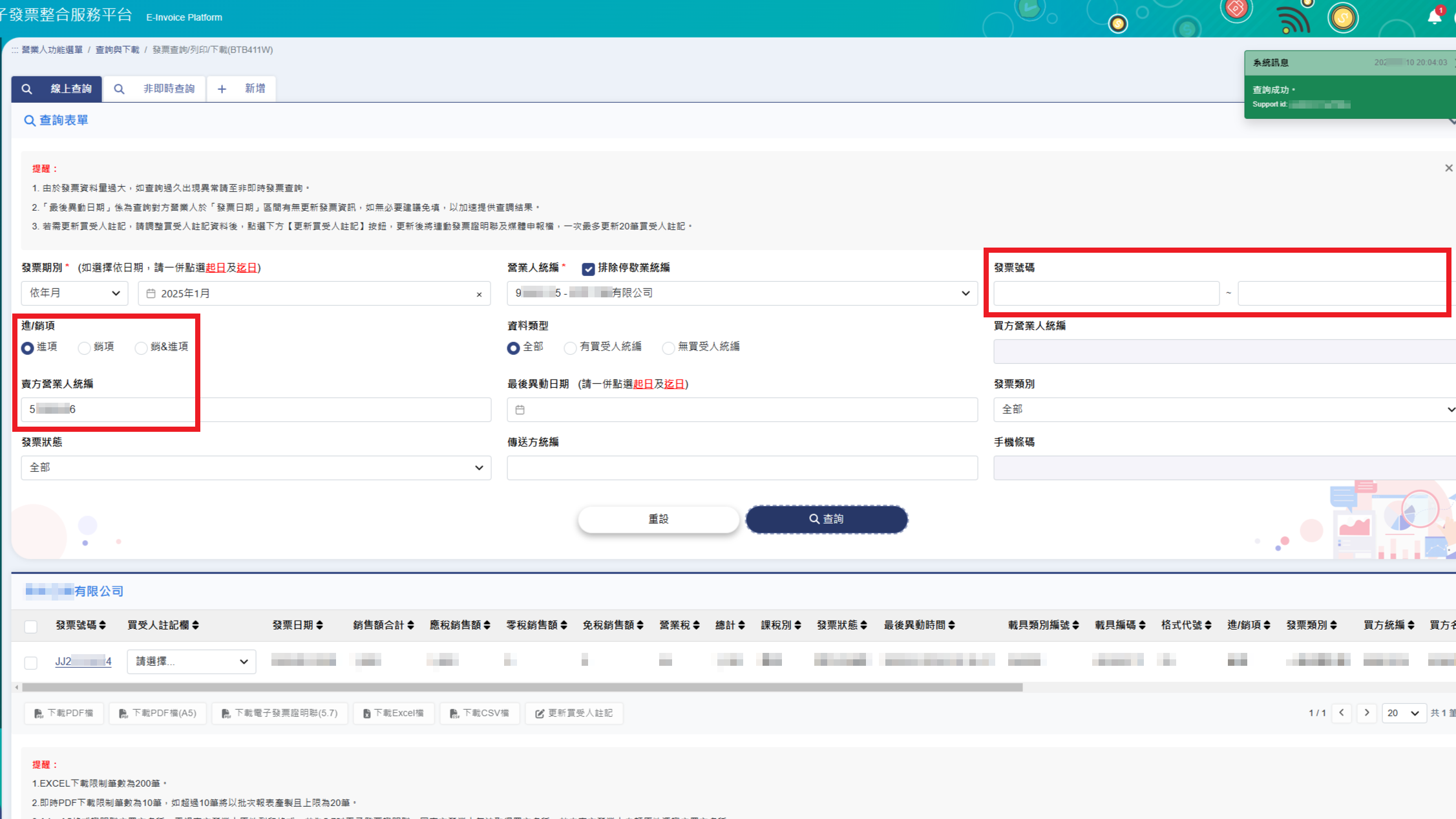 6.可以指定更多條件縮小查詢範圍,例如:發票號碼、進項+對方統編