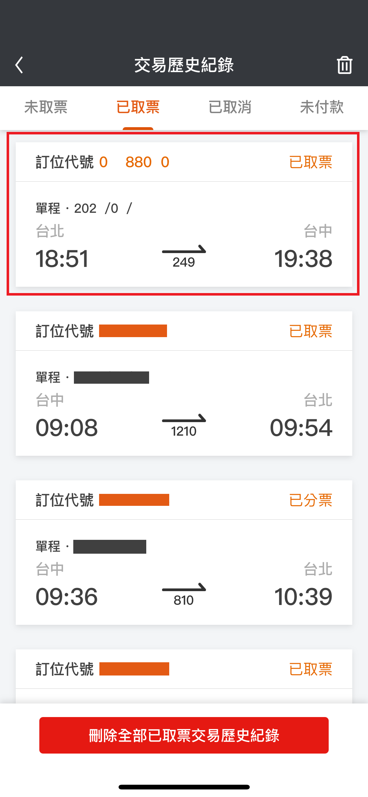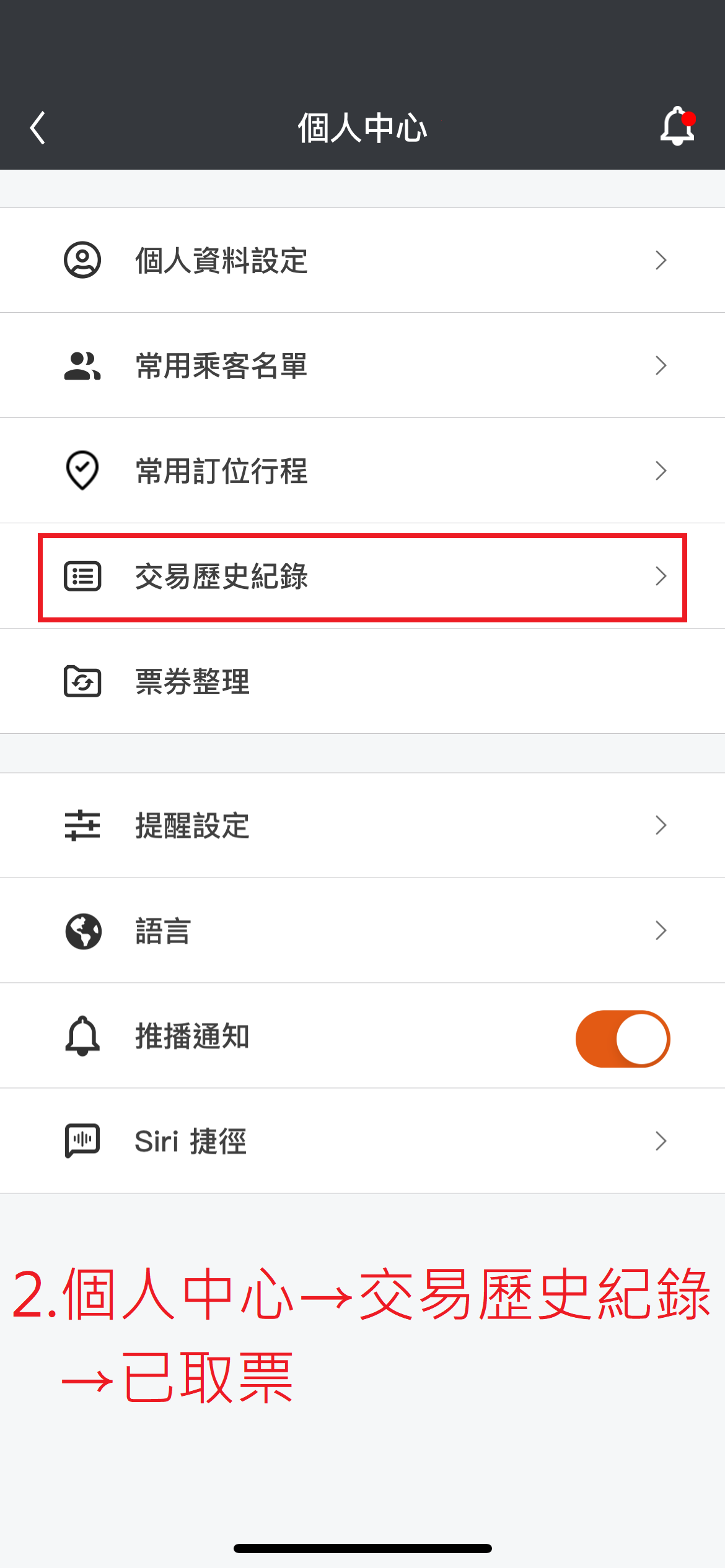 3.或是到”個人中心”→”交易歷史紀錄”→”已取票”尋找