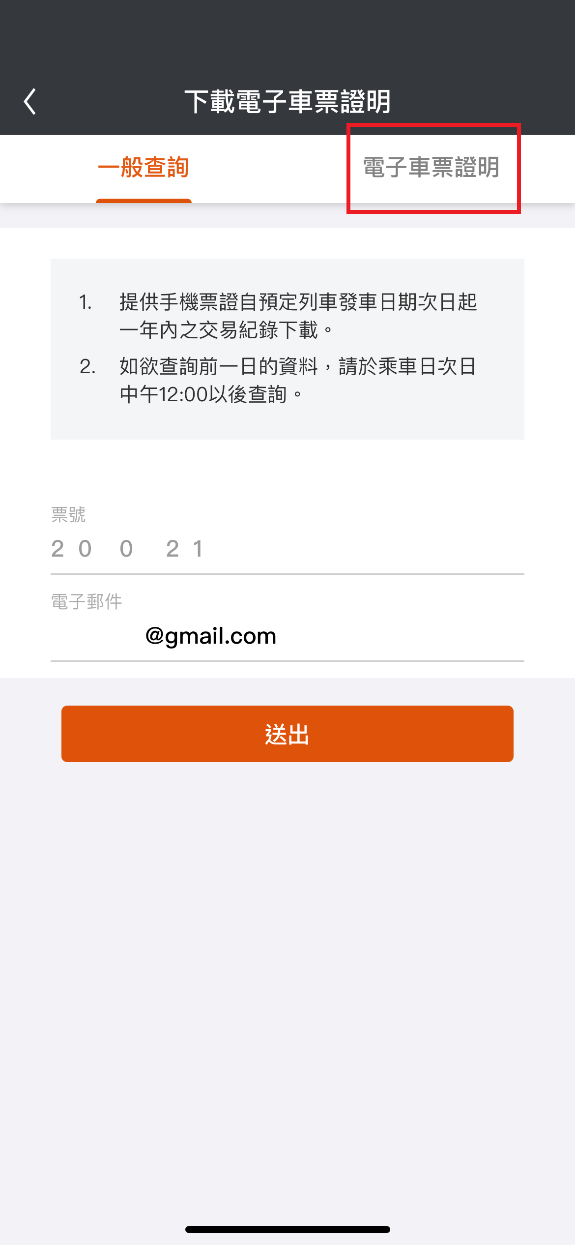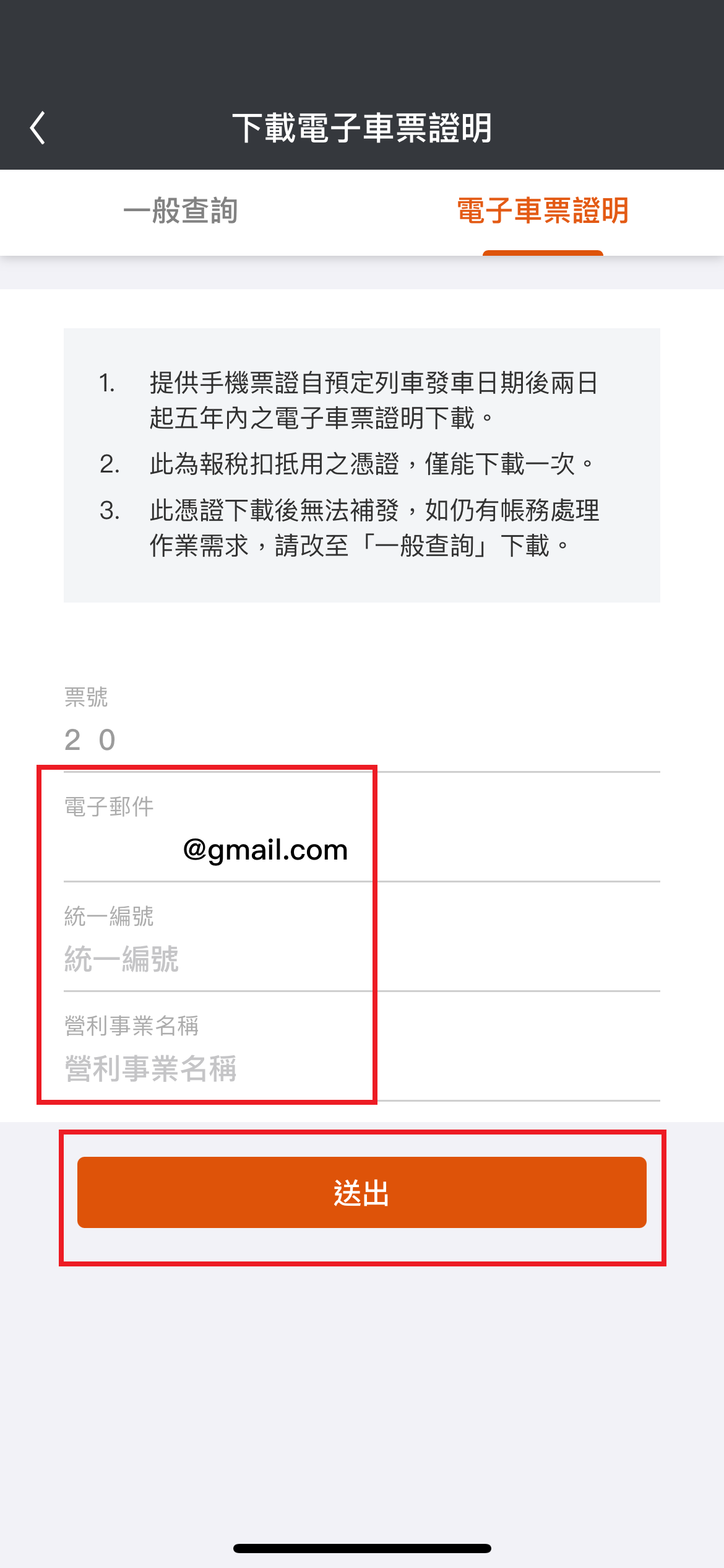 5.點選”電子車票證明”,輸入統編等資料後送出